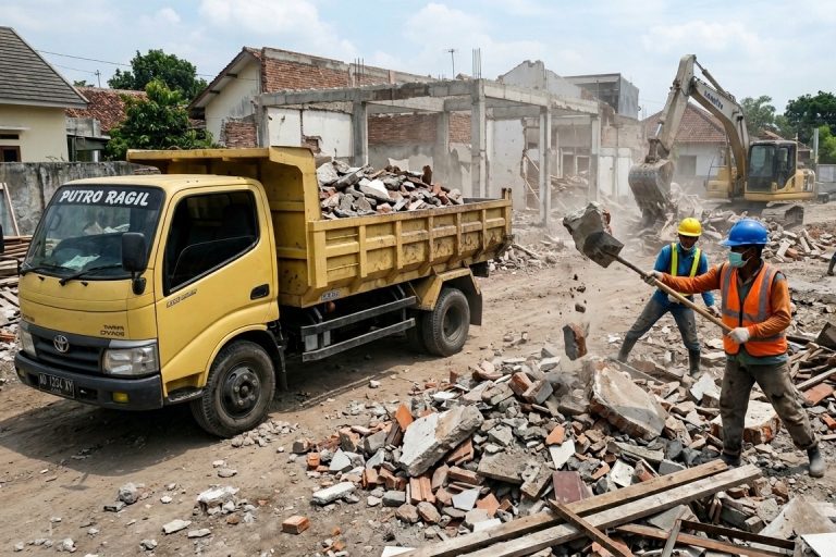 Kami melayani jasa pembuangan puing bekas bongkaran bangunan dan sisa sampah proyek.